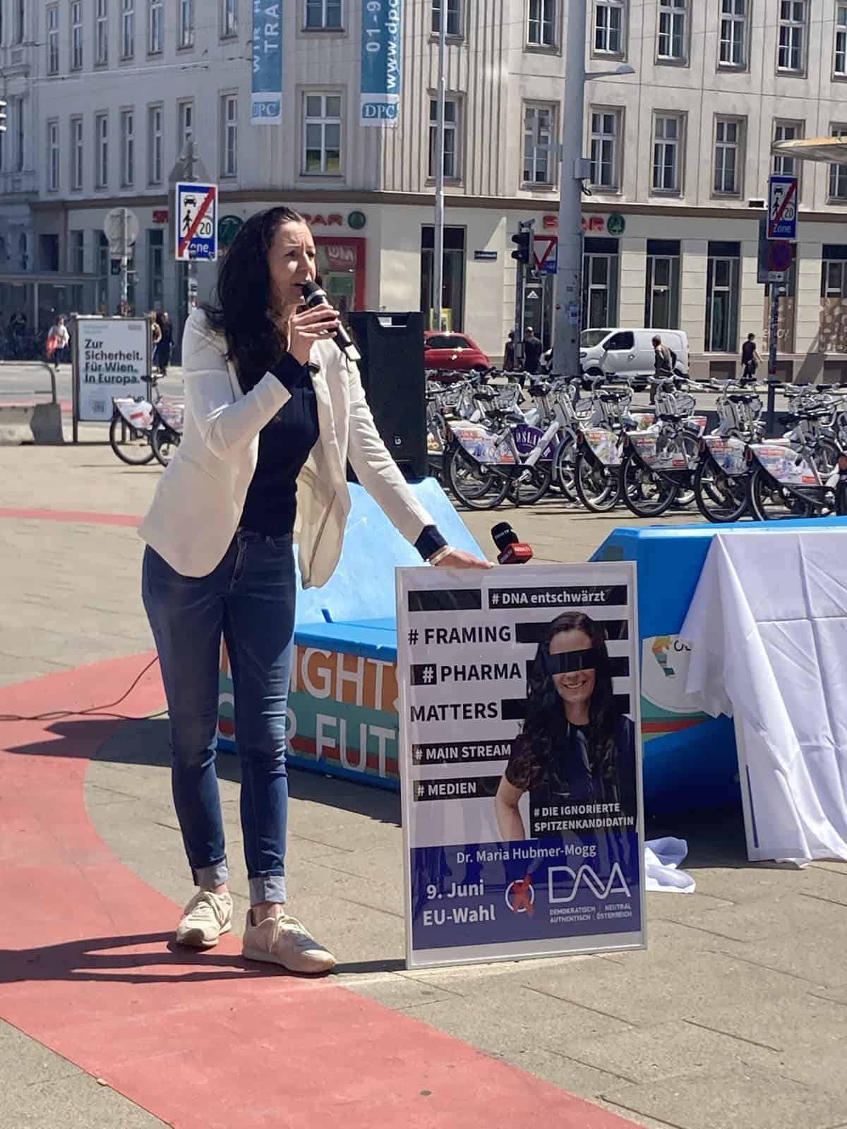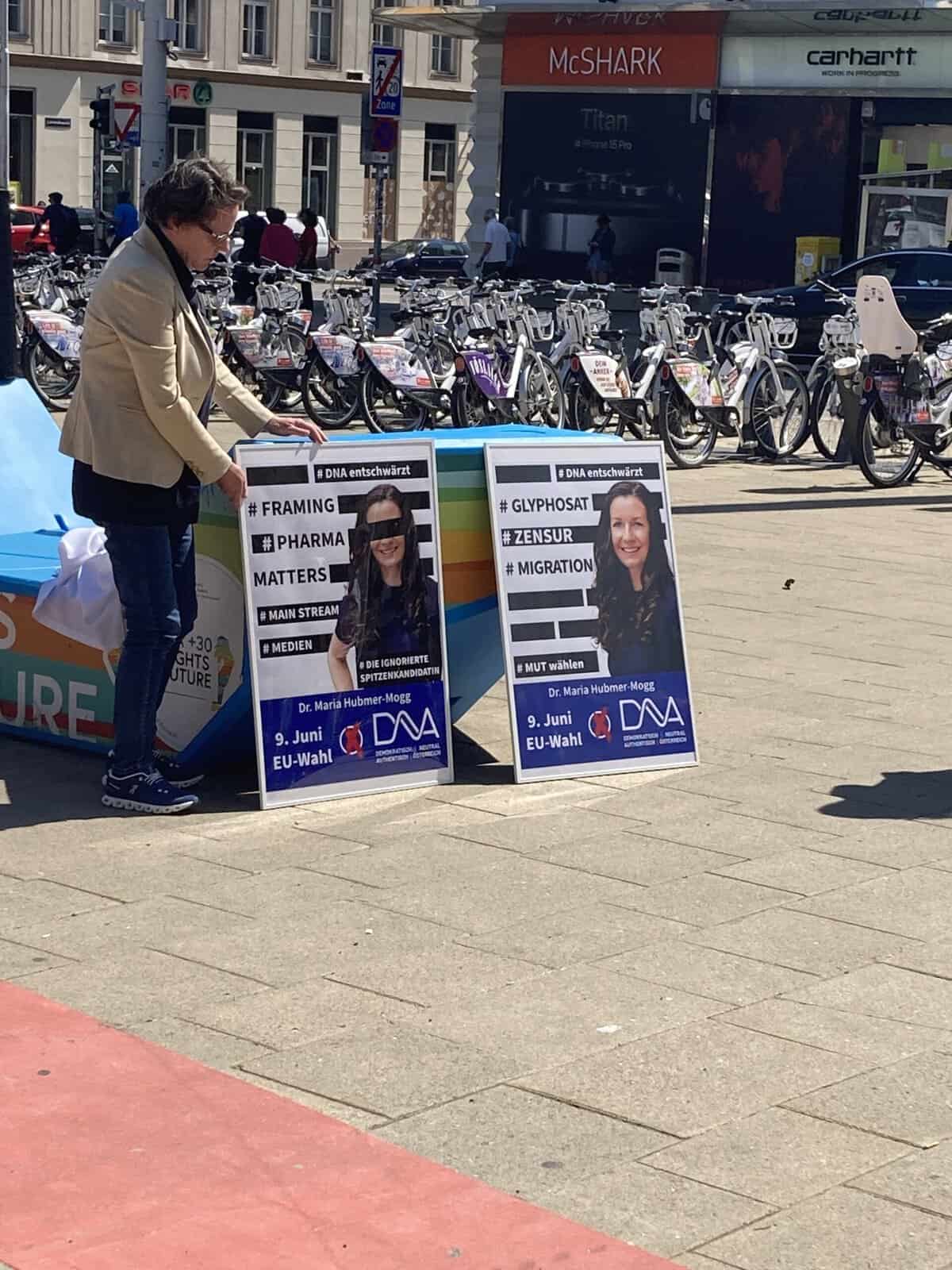 Sie sprechen hier nicht mit Frau Hubmer-Mogg, dieser Artikel ist nur eine Berichterstattung über eine Pressekonferenz und der Plakatpräsentation von der Partei DNA. Bei Fragen zu der DNA melden Sie sich bitte direkt bei der Partei. Das wäre die Website der Partei: https://dna4austria.eu/
